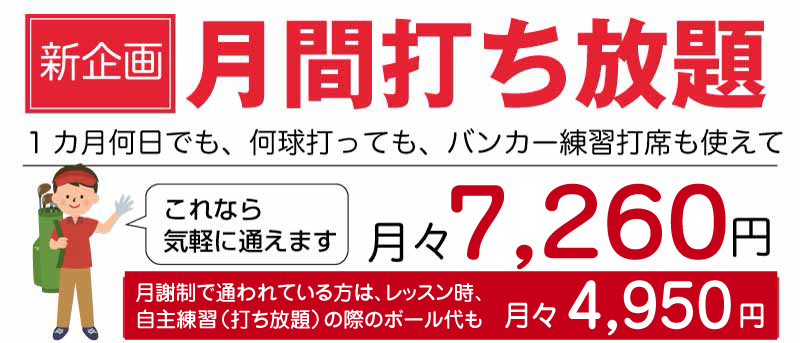 1ヶ月何日でも、何球打っても、バンカー練習打席もご利用可能!
